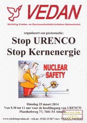 Er wordt in Nederland al enige tijd gepraat over het verkopen van het Nederlandse deel van Urenco, nadat het kabinet dit voornemen in mei 2013 bekend maakte, De demonstranten vinden dat Urenco niet geprivatiseerd maar gesloten moet worden. En “het zou goed zijn als dit besluit daadwerkelijk genomen werd vóór de 30ste herdenking volgend jaar”, aldus het persbericht van VEDAN (Vredes- En Duurzaamheids-Activiteiten Netwerkstad).