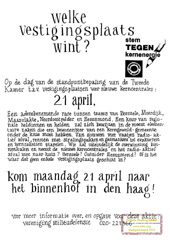 Buiten op het Binnenhof is een soort ‘zeskamp’ tussen de mogelijke locaties: Borssele, Moerdijk, Maasvlakte, Noordoostpolder en Eemshaven. Allerlei “elementaire zaken” voor vestigingsplaatsen komen aan de orde: van “sjouwen met vaatjes radio-aktief afval, rennen met stralingspakken en gasmaskers tot evakueren en kernraketten stapelen”.