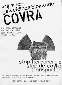 Al het laag- en middelradioactief afval opgeslagen in de loodsen op het ECN-terrein moet vervoerd worden naar de COVRA-complex in Borssele nu de gebouwen daarvoor klaar zijn. De transporten (in totaal 600 vrachtwagens) zijn in november 1991 begonnen. De actiegroep 'Stop COVRA' roept op tot een blokkade van beide poorten van het ECN-terrein om de transporten te hinderen. Ongeveer 35 mensen zijn op deze koude en mistige morgen al vroeg present in het Noord-Hollandse Petten. Er vinden die dag geen transporten plaats, door de mist... of toch om extra publiciteit door politie-ingrijpen te voorkomen?